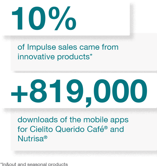 In the retail delivery channel we registered a growth of 68% compared to the previous year, thanks to the incorporation of brands such as Cielito Querido Café®, Moyo® y Nutrisa® to the Uber Eats platform.