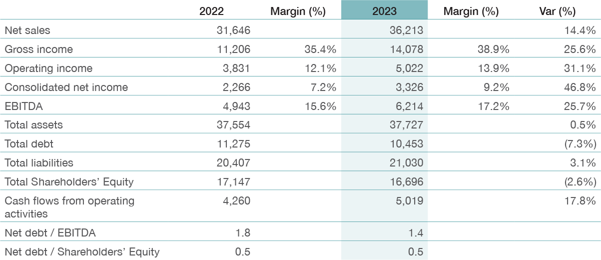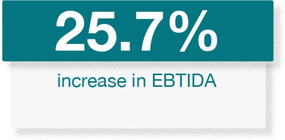 We experienced a notable increase in profitability with a 3.5 percentage point increase in gross margin, reflecting a 31.5% growth in operating income and a 25.7% growth in EBITDA (earnings before interest, taxes, depreciation and amortization).