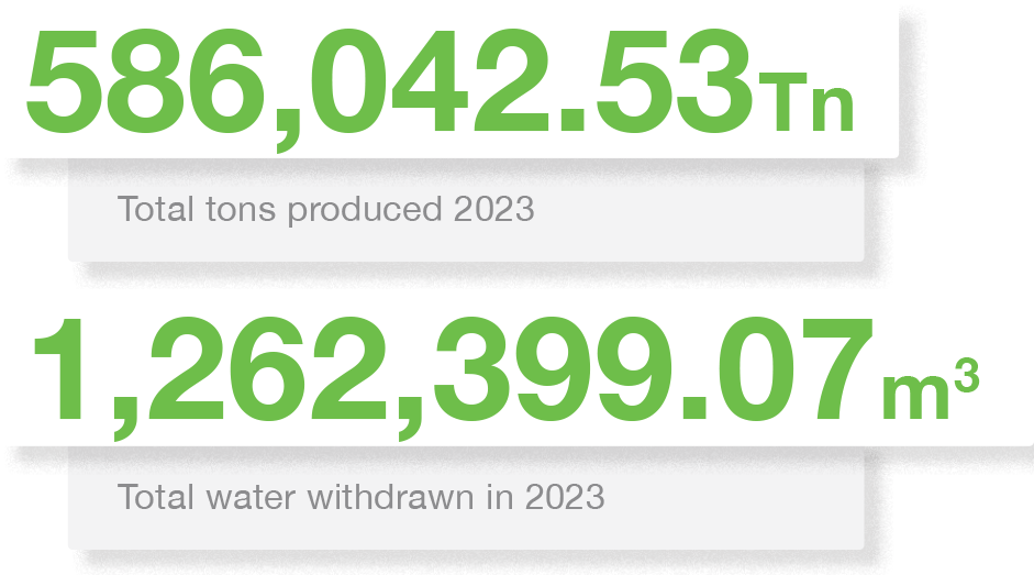 In 2022, we placed three billion pesos in sustainability-linked bonds, positioning ourselves as the first issuer in the food sector to issue this type of instrument in Mexico. With this issuance, we have committed to reducing our water consumption to 1.98 m3 / Tn produced by 2030.