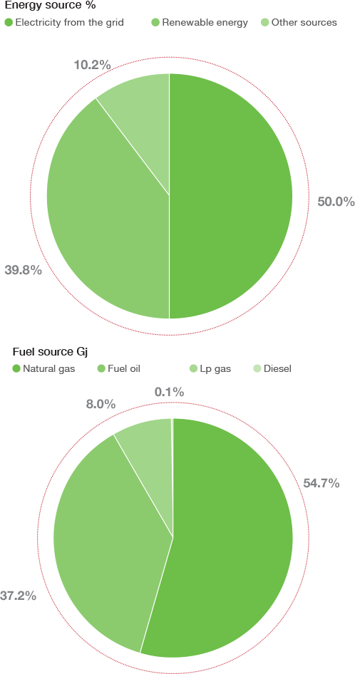 Total consumption of energy was 1,116,257.00 GJ, 7.8% lower than consumption in the prior year. Energy was distributed as follows: Electricity: : 358,761.00 GJ |