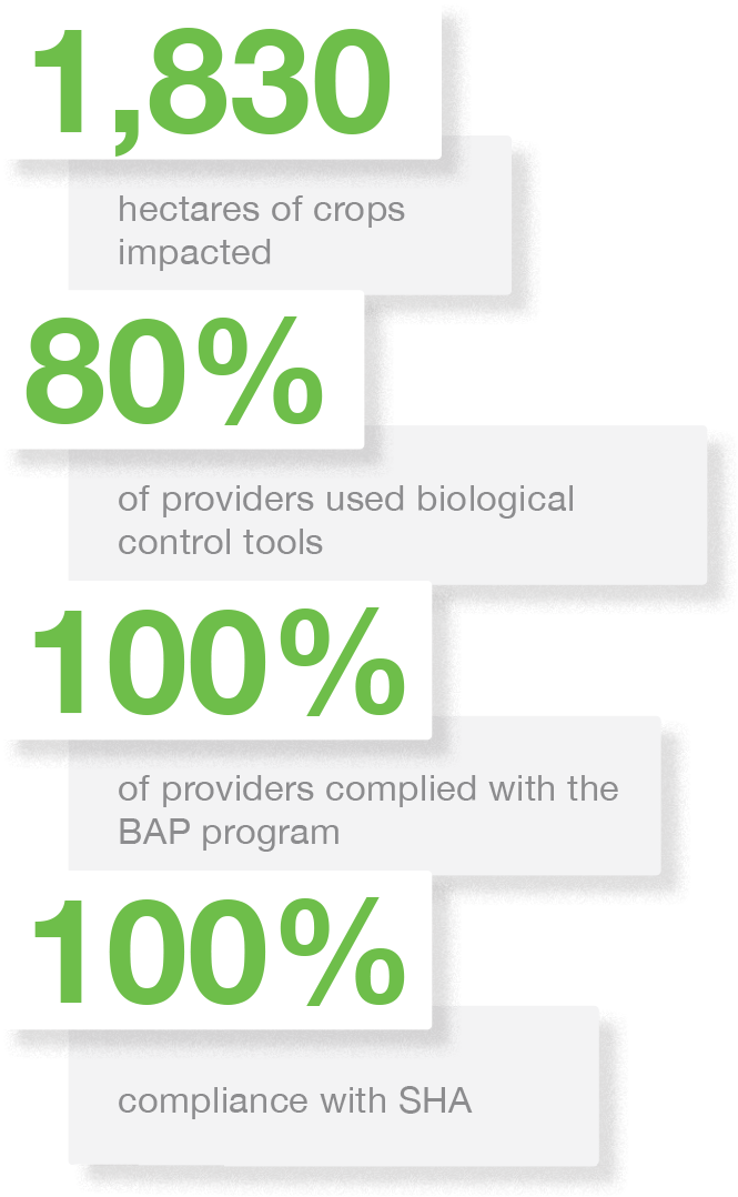 We employ practices that help fight climate change, use resources such as water efficiently, and protect biodiversity. As part of these efforts, we are aligned with SDG 2 Zero Hunger, and SDG 12 Responsible Production and Consumption.