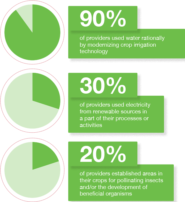 In 2023, 146,265.28 tons of agricultural raw materials and bee products were acquired (both fresh and frozen), of which 72,800 tons were from providers that adhere to the PASyR. This number is 50% of the total amount of agricultural raw materials acquired.