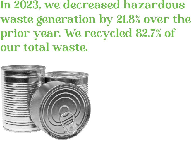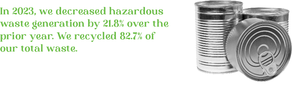 In 2023, 15.25 tons of cans were collected in partnership with Grupo Promesa and through Walmart’s Reciclamanía (Recyclemania) program, which was triple the amount collected in 2022. Together with Grupo Promesa, 1.7 tons of glass and 156 kg of multi-layer packages (Tetra Pak®) were collected.