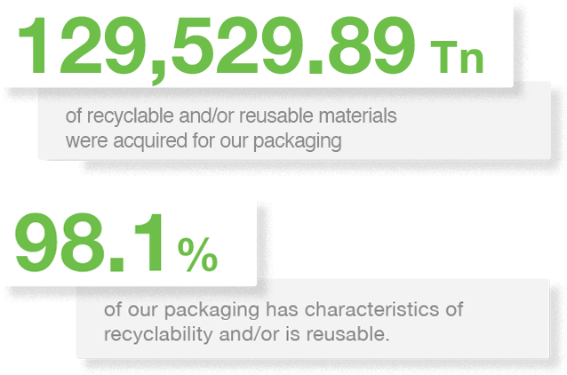 129,529.89 Tn of recyclable and/or reusable materials were acquired in our packaging.