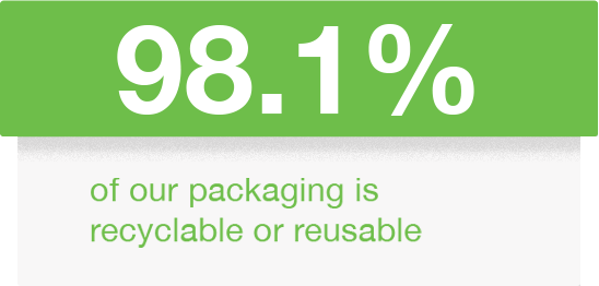 98.1% of our packaging has characteristics of recyclability and/or is reusable.