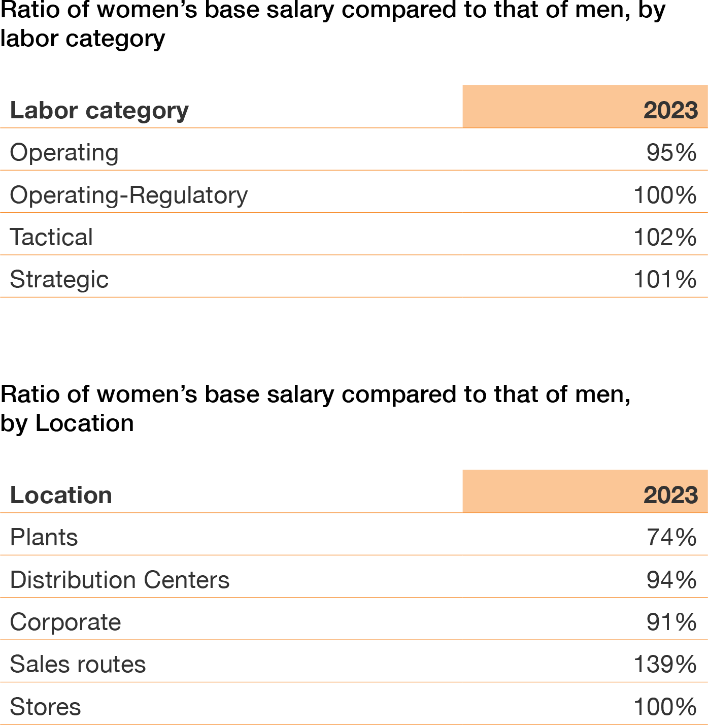 As part of our commitment to gender equality, we calculated the ratio of women’s base salary compared to that of men, so that we can focus our efforts on closing the salary gap.
