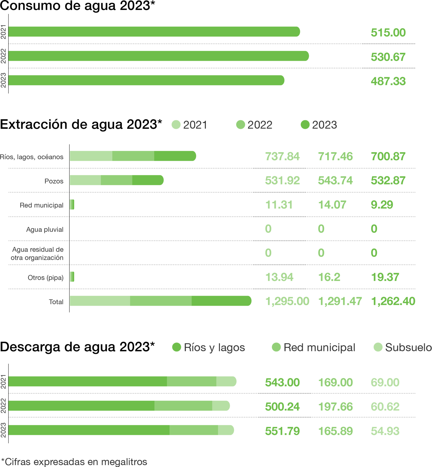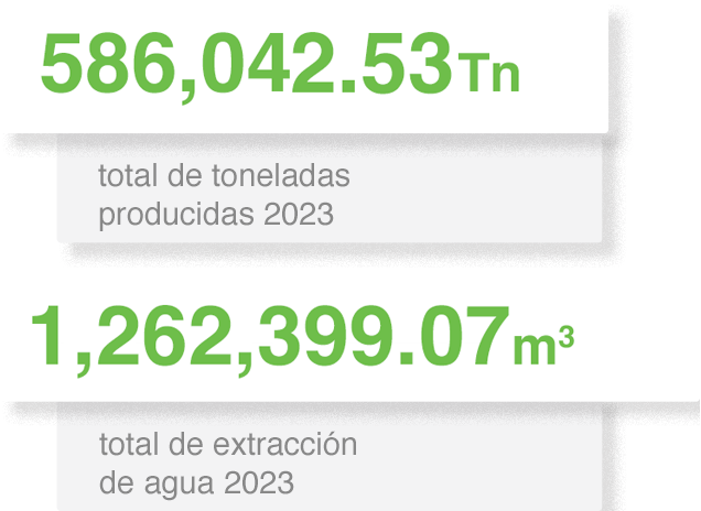En 2022, colocamos $3,000 millones de pesos en certificados bursátiles vinculados a la sostenibilidad, posicionándonos como la primera emisora del sector de alimentos en realizar una emisión de este tipo en México. Nos comprometimos a que en 2030 nuestro consumo de agua sea de 1.98 m3/Tn producida.