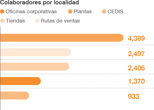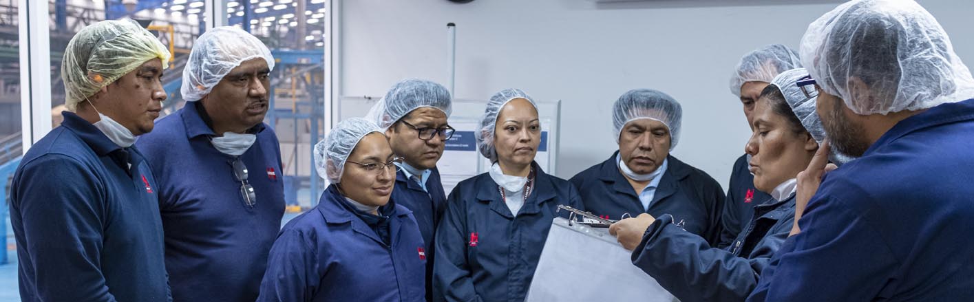 Durante 2023 brindamos 295,083.3 horas de formación al 100% de nuestra plantilla laboral en todas nuestras localidades (plantas, centros de distribución, corporativos, rutas de ventas y tiendas). Invertimos más de $18.3 millones de pesos en programas de desarrollo de competencias técnicas, de normatividad y liderazgo, sostenibilidad, entre otros.
