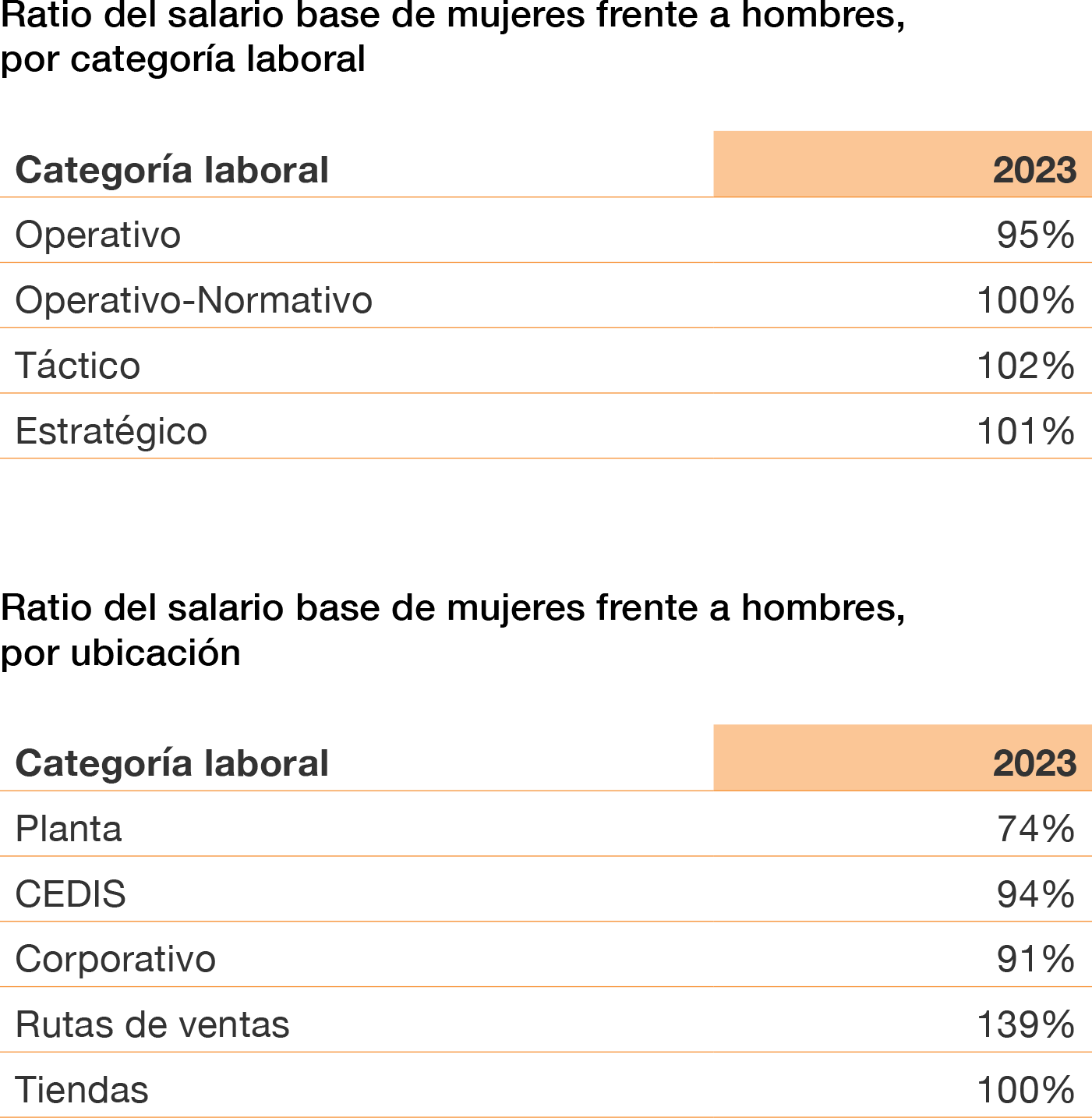 En línea con nuestro compromiso con la equidad de género, calculamos el ratio del salario base de mujeres frente a hombres para enfocar nuestros esfuerzos en cerrar la brecha salarial.